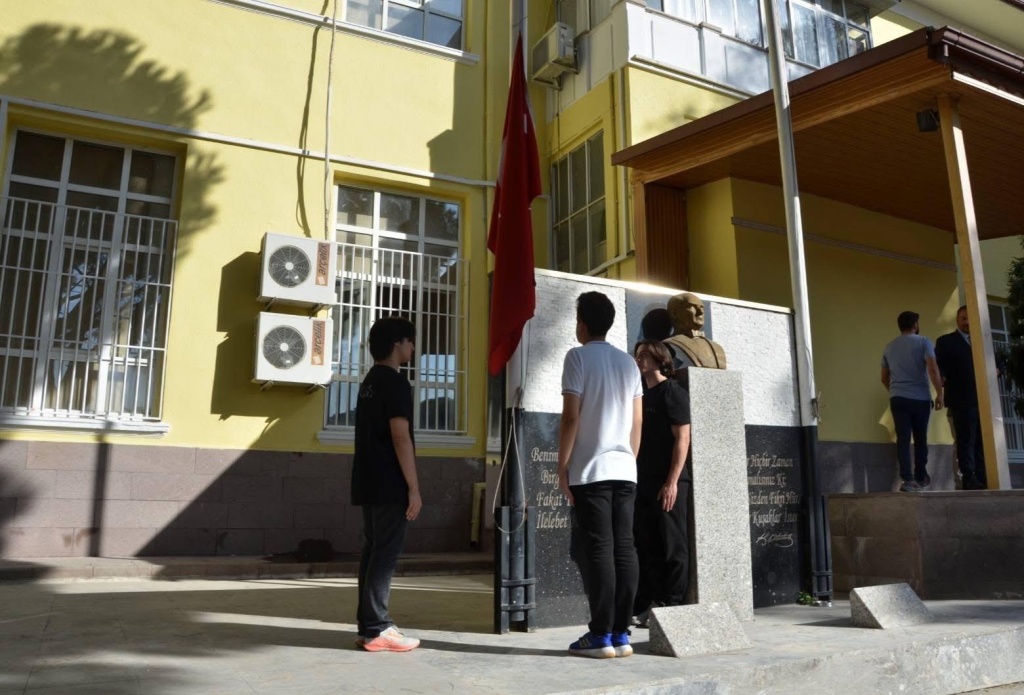 İl Milli Eğitim Müdürümüz Sn. Mehmet UĞURELLİ, onarımdan geçen tarihi okul binamızda bayrak törenine katıldı. Bina içinde revir, kütüphane, laboratuvar gibi bölümlerde incelemelerde bulunan Müdürümüz öğrencilerle sohbet etti.